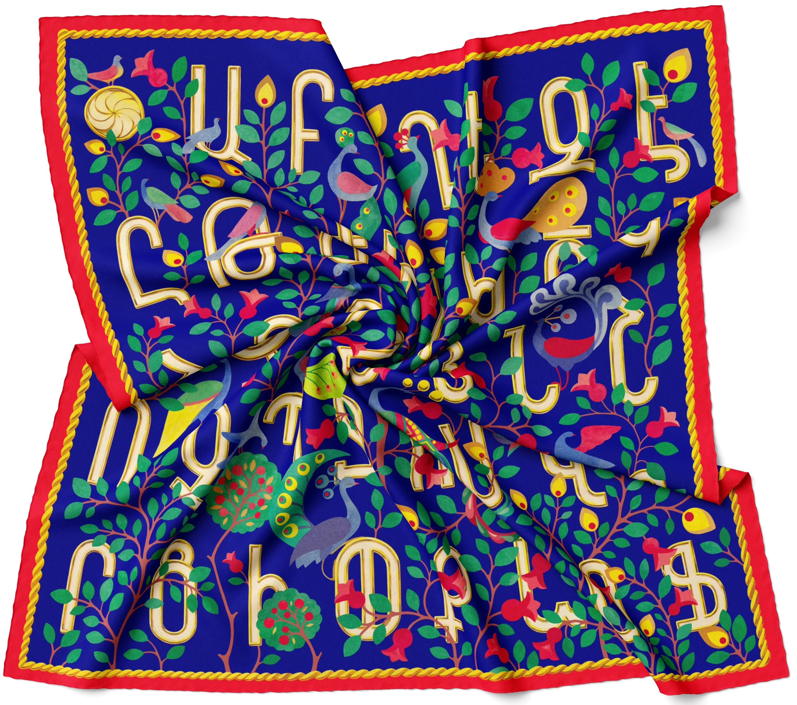 Armenian Alphabet — Blue Silk Scarf