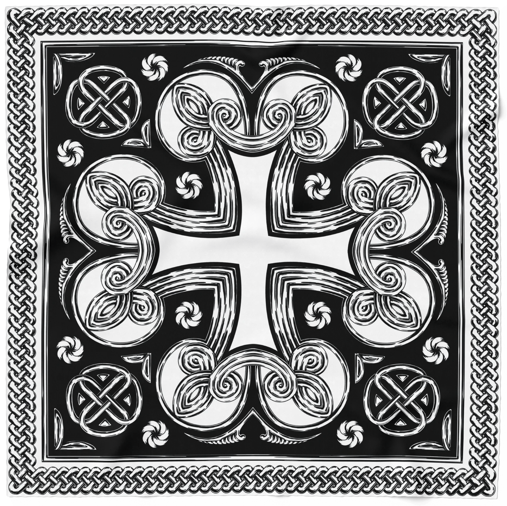 Ancient Armenian Cross — Black and White Silk Scarf